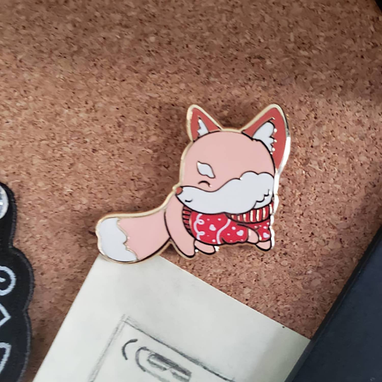 Featuring a sweet fox bundled up in cozy knits and a warm scarf, this pin will add a touch of winter charm to your jackets, bags, and more.